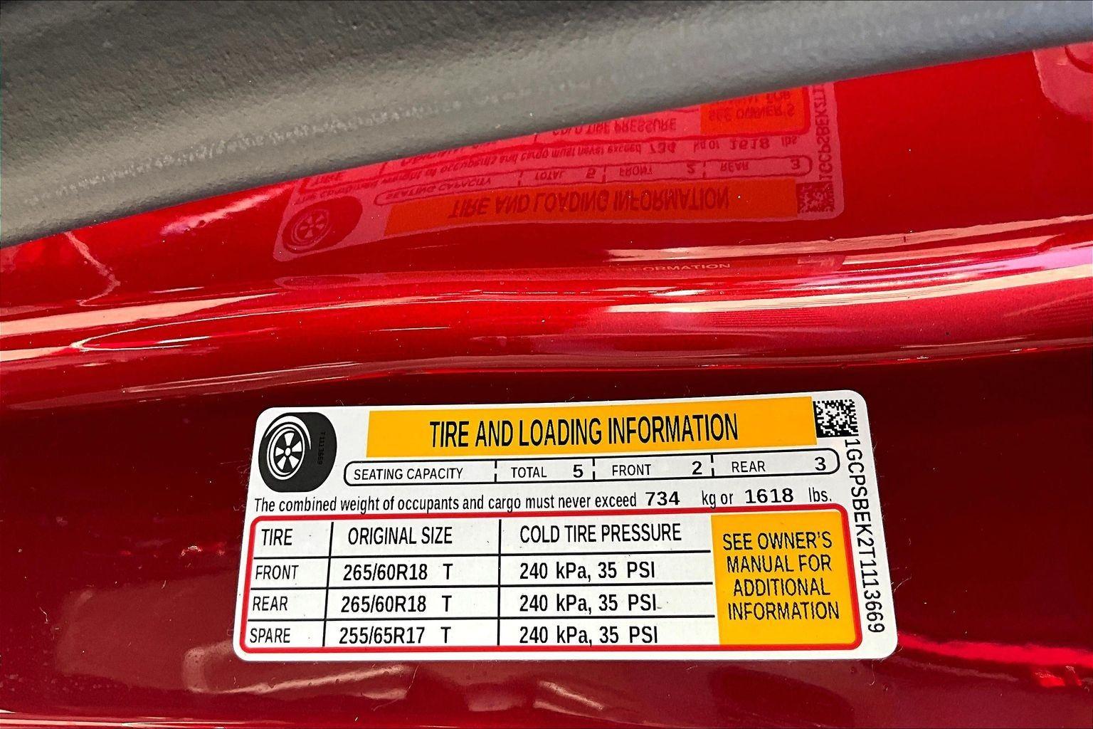 EMISSIONS, FEDERAL REQUIREMENTS, ENGINE, TURBOMAX, TRANSMISSION, 8-SPEED AUTOMATIC, REAR AXLE, 3.42 RATIO, WHEELS, 18 X 8.5 (45.7 CM X 21.6 CM), HIGH GLOSS BLACK ALUMINUM, TIRES, 265/60R18 ALL-SEASON, BLACKWALL, RADIANT RED TINTCOAT, SEATS, FRONT BUCKET, JET BLACK, CLOTH SEAT TRIM, 11.3 DIAGONAL ADVANCED COLOR LCD DISPLAY WITH GOOGLE BUILT-IN, WT CUSTOM PACKAGE, ADVANCED TRAILERING PACKAGE, WT CONVENIENCE PACKAGE II, DIFFERENTIAL, AUTOMATIC LOCKING REAR, ALTERNATOR, 220 AMP, TRAILERING APP, TRAILER BRAKE CONTROLLER, INTEGRATED, TRAILERING PACKAGE, HEAVY-DUTY, LOCKING CYLINDER TAILGATE, KEYED CYLINDER LOCK, BEDLINER, SPRAY-ON, BLACK WITH CHEVROLET LOGO, LPO, BLACK NAMEPLATES, TAILGATE, EZ-LIFT AND LOWER, STOWFLEX TAILGATE, STORAGE COMPARTMENT, LOCKABLE, SEAT ADJUSTER, DRIVER 8-WAY POWER, SEAT ADJUSTER, POWER DRIVER LUMBAR CONTROL, STEERING WHEEL, WRAPPED, BLIND ZONE STEERING ASSIST WITH TRAILERING