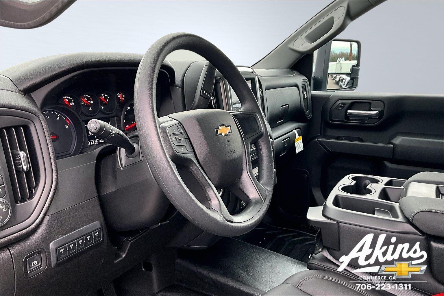 EMISSIONS, FEDERAL REQUIREMENTS, ENGINE, DURAMAX 6.6L TURBO-DIESEL V8, TRANSMISSION, 10-SPEED AUTOMATIC, REAR AXLE, 3.42 RATIO, WHEELS, 17 (43.2 CM) PAINTED STEEL, SUMMIT WHITE, WT CONVENIENCE PACKAGE, FUEL TANK, REAR ONLY, 40 GALLON, BUMPER, FRONT CHROME, MIRRORS, OUTSIDE POWER-ADJUSTABLE VERTICAL TRAILERING WITH HEATED AND AUTO-DIMMING UPPER GLASS, UPFITTER SWITCH KIT, (5), POWER OUTLET, INTERIOR, 120-VOLT (400 WATTS), REAR CAMERA KIT.