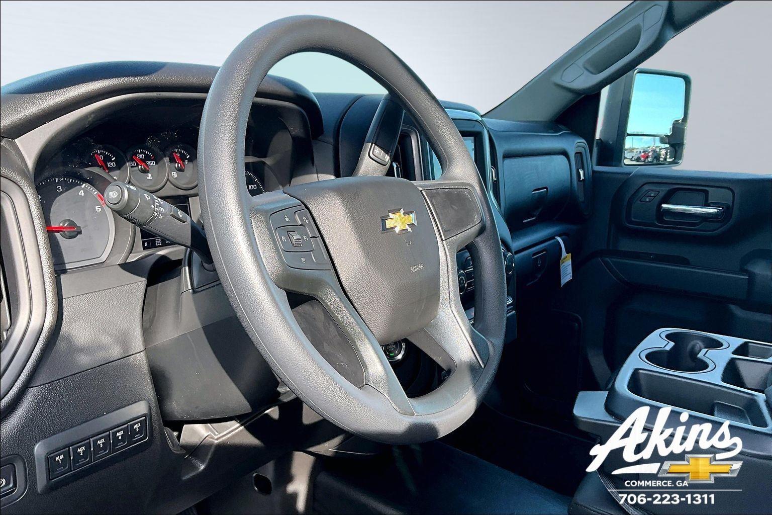 EMISSIONS, FEDERAL REQUIREMENTS, ENGINE, DURAMAX 6.6L TURBO-DIESEL V8, TRANSMISSION, 10-SPEED AUTOMATIC, REAR AXLE, 3.42 RATIO, WHEELS, 17 (43.2 CM) PAINTED STEEL, SUMMIT WHITE, WT CONVENIENCE PACKAGE, FUEL TANK, REAR ONLY, 40 GALLON, BUMPER, FRONT CHROME, MIRRORS, OUTSIDE POWER-ADJUSTABLE VERTICAL TRAILERING WITH HEATED AND AUTO-DIMMING UPPER GLASS, UPFITTER SWITCH KIT, (5), POWER OUTLET, INTERIOR, 120-VOLT (400 WATTS), REAR CAMERA KIT.