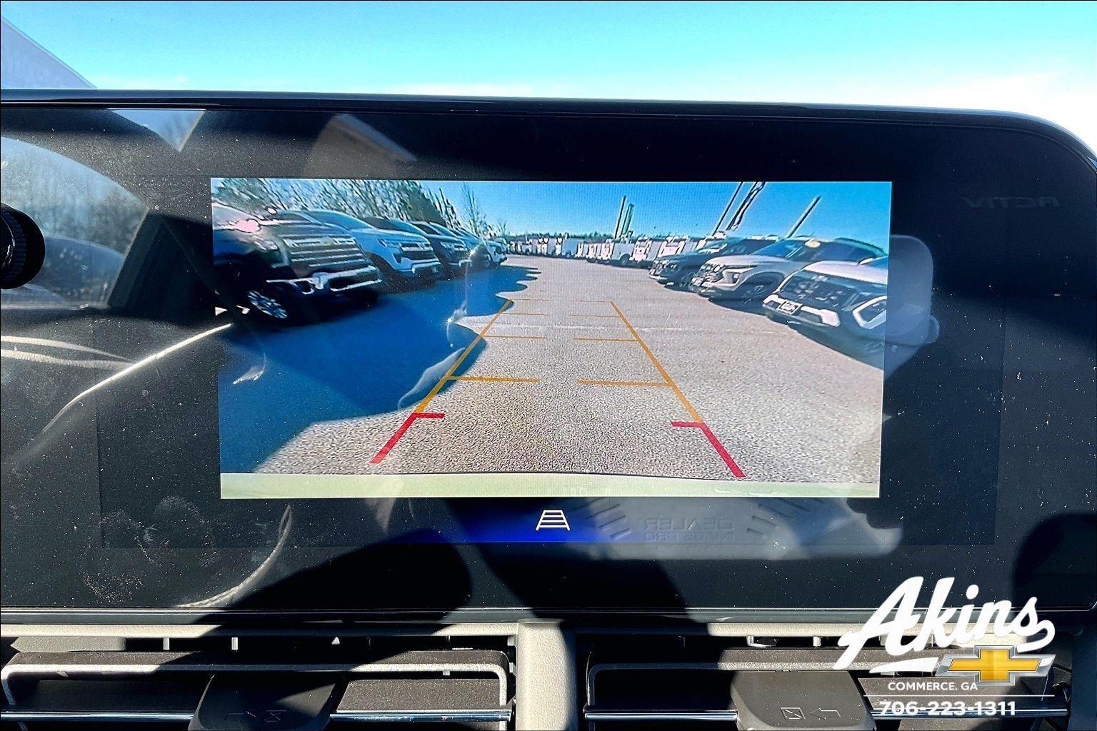 - The vehicle is equipped with a camera that displays an image of the area behind the vehicle on an interior display.